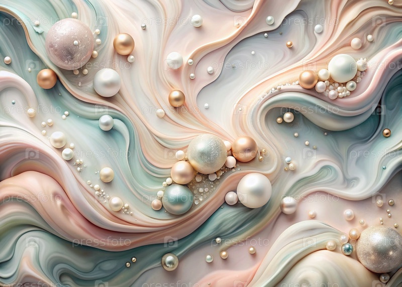 Абстрактный, мечтательный акварельный фон с волнами, полосами, жидкими потоками пастельного розового, синего и жемчуга