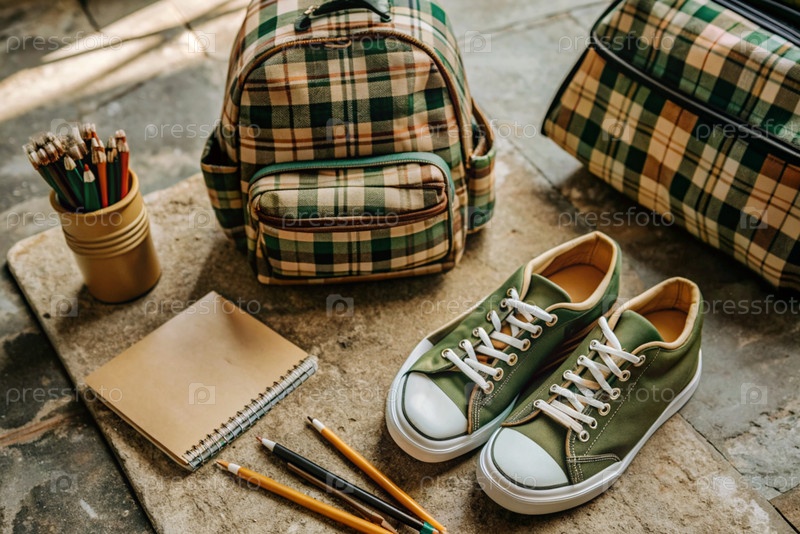 Праздник приходится на 1 сентября. рюкзак, кроссовки, яблоко и карандаши. вернемся в школу. концепция нового учебного года в школе. осенний день знаний