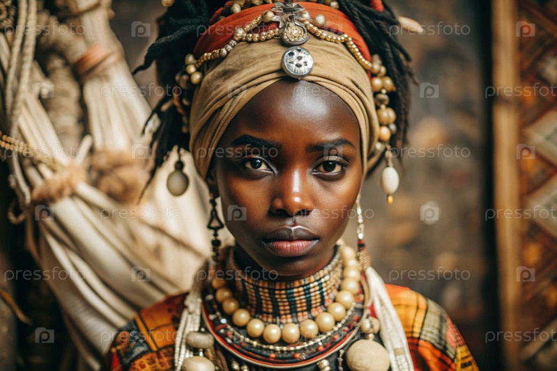 Красивая африканская девушка в традиционном национальном костюме. с костями. портрет символизирует традиции, культуру и красоту африканского народа