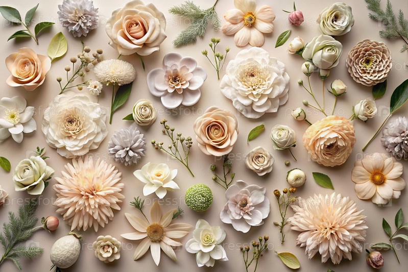 Красивый, воздушный, нежный цветочный фон в бежевых, кремовых и розовых тонах