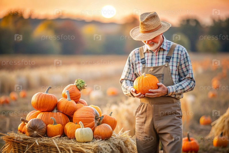 Руки мужчины в квадратной рубашке с тыквенным крупным планом и красивым осенним рисунком. Сбор тыков. Концепция празднования Дня благодарения и Хэллоуина