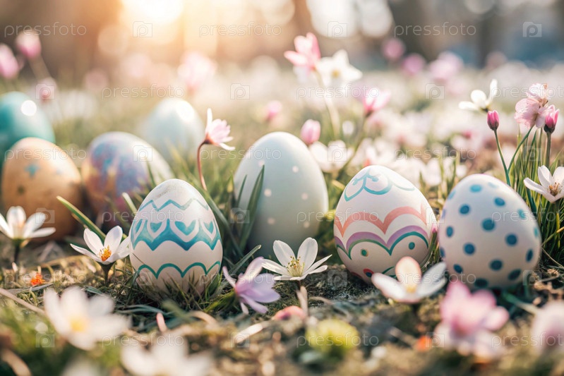 Красивый фон с пасхальными яйцами и весенними цветами