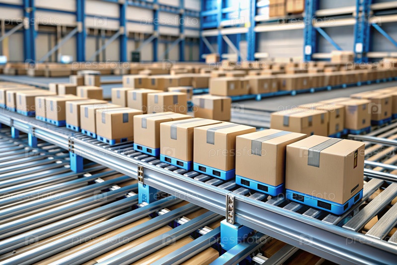 Интеллектуальная автоматическая упаковка посылок на складе, теги и QR-коды в картонные коробки для эффективного отслеживания, аутентификации и слежения