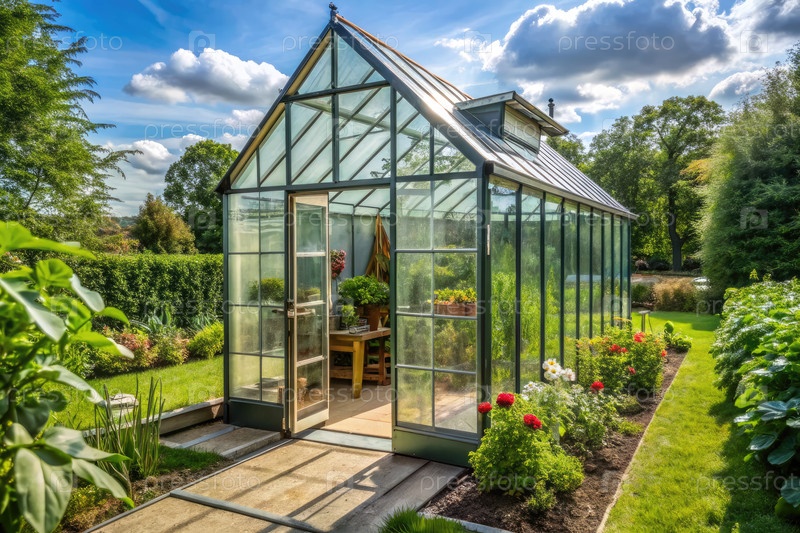 Хорошо сохранившаяся теплица с дверью Аджара в солнечный день