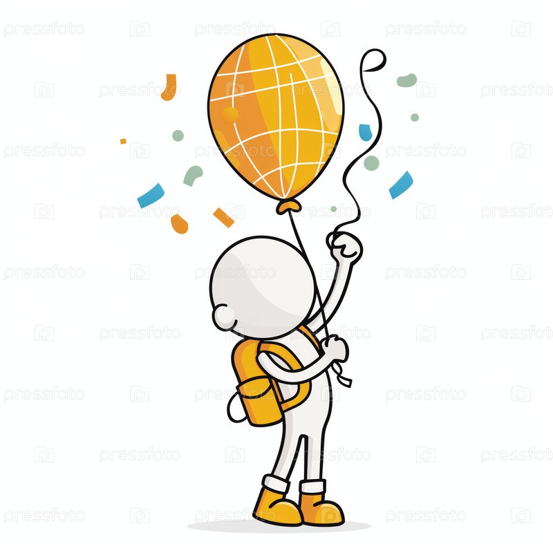 Stickman держит шарики с конфетти на белом фоне