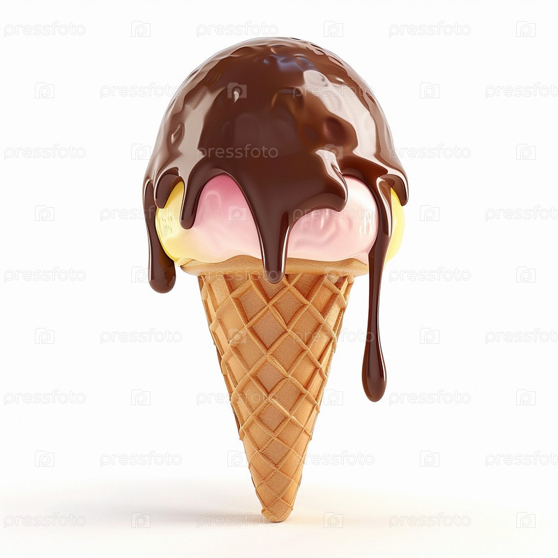 Расплавленное 3D мороженое в конусе вафли Сироп, крошки, карамель