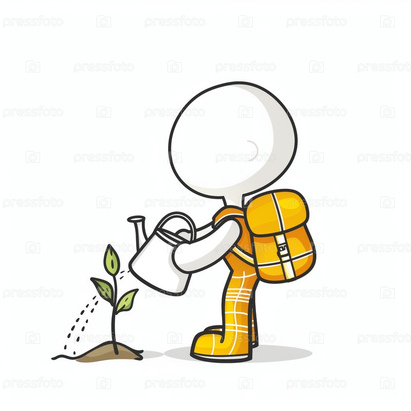 Stickman поливает растение оросительной банкой