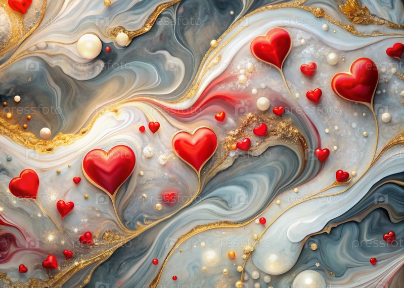 Знак на День святого Валентина. абстрактный фон. стильные мраморные полосы с красными сердцами. эпоксидная смола