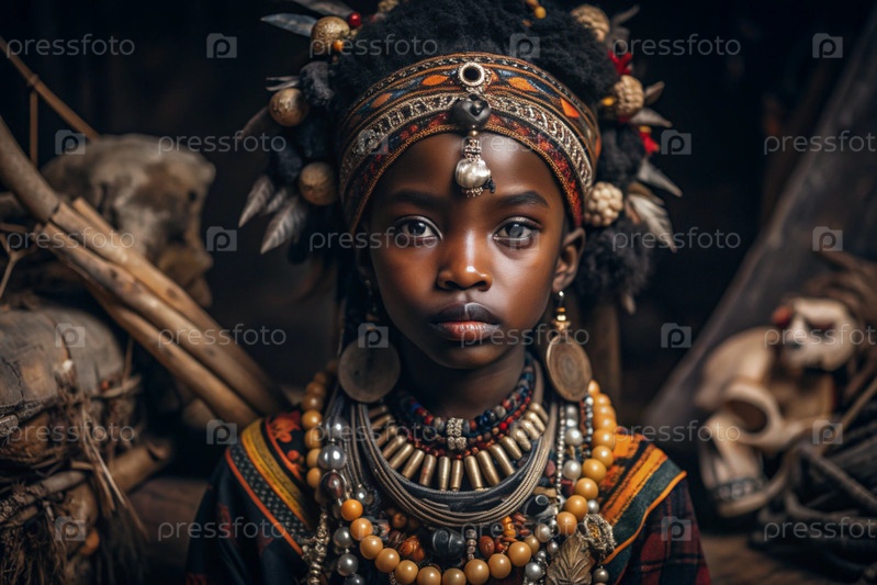 Красивая африканская девушка в традиционном национальном костюме. с костями. портрет символизирует традиции, культуру и красоту африканского народа