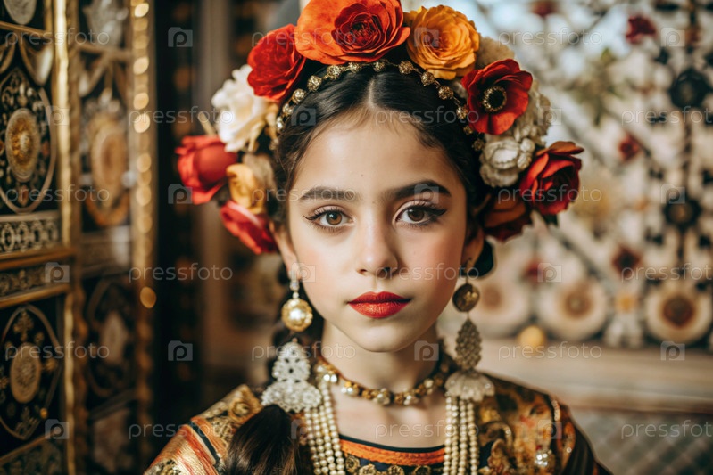 Испанская девушка в традиционном испанском национальном костюме. Перед быком. Бикоборство. Портрет символизирует традиции и культуру народа Испании
