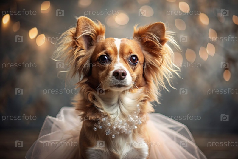 Красивый портрет милой имбирной собаки, одетой в розовое туту