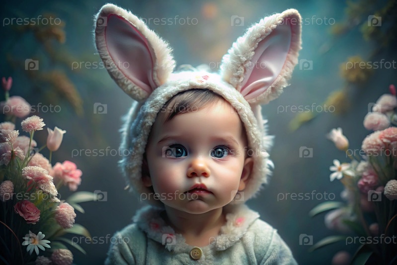 Баннер. Винтажная открытка. Девушка в костюме пасхального кролика с милыми ушами. Концепция праздника Bright Easter Spring
