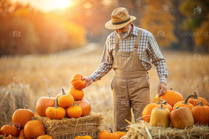 Руки мужчины в квадратной рубашке с тыквенным крупным планом и красивым осенним рисунком. Сбор тыков. Концепция празднования Дня благодарения и Хэллоуина
