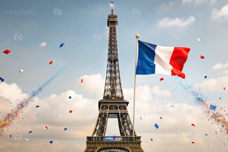 14 июля - Национальный день Франции.Французский национальный флаг на Эйфелевой башне.Триколор