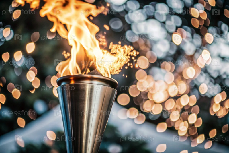 Пламя факела горит среди красивого размытого бокеха