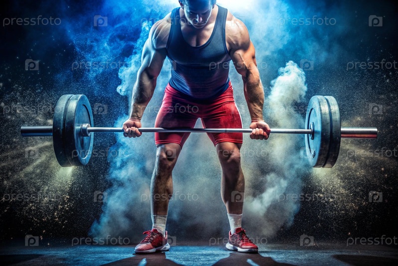 Спортсмен берет на себя тяжелый вес штанги