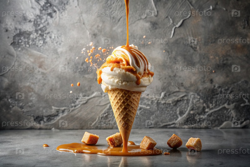 сладкий холодный десерт кремовый ванильный мороженое с карамелем баннер реклама любовь к мороженому