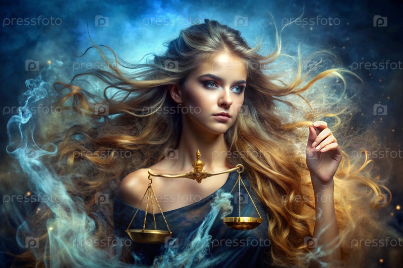 Знаки Зодиака. Астрологический прогноз. Предсказания. Красивая девушка в знаке зодиака Весы. Понятие астрологии и гороскопа. Серия изображений 12 знаков зодиака