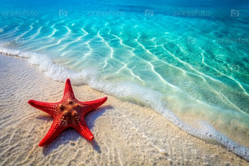 Концепция летних каникул. Подводный мир. Кораллы и морские звезды под водой. Красивый абстрактный фон для баннера