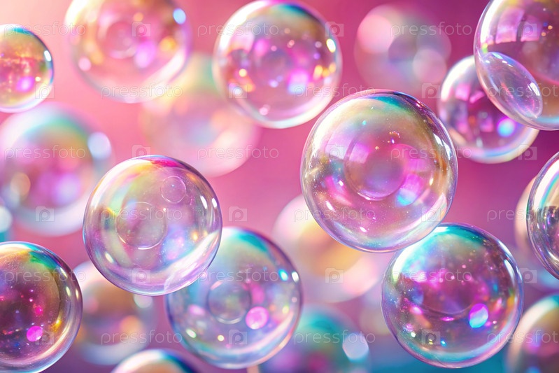 Баннер. Праздничный фон с мерцающими, блестящими, мерцающими прозрачными мыльными пузырями. Красивая сторона