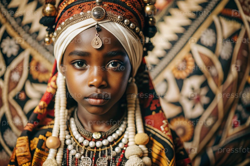Красивая африканская девушка в традиционном национальном костюме. с костями. портрет символизирует традиции, культуру и красоту африканского народа