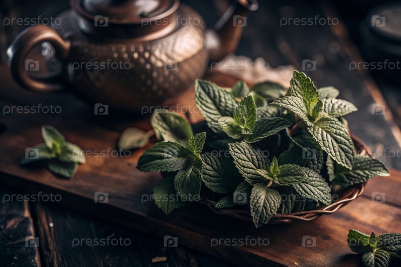 Закрытие зеленых листьев мяты. Листья с заметными венами и текстурой. Мента, бальзам для приготовления чая. Травяной чай для нервной системы