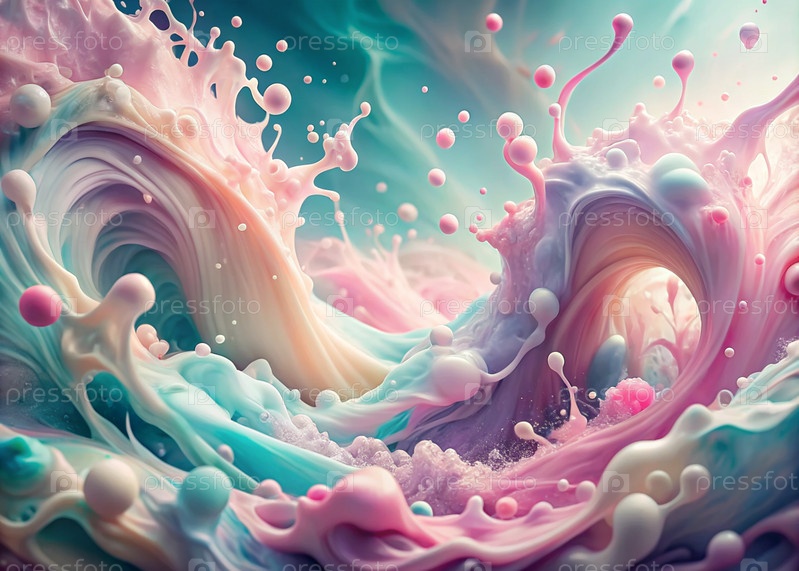 Абстрактный, мечтательный акварельный фон с волнами, полосами и жидкими потоками розового, синего и жемчуга