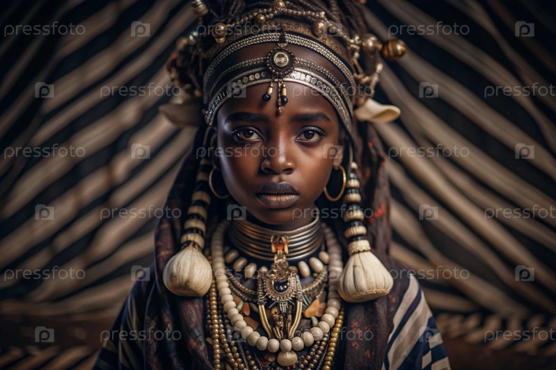 Красивая африканская девушка в традиционном национальном костюме против зебры портрет символизирует традиции и красоту африканского народа
