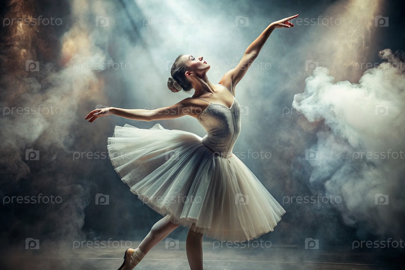 Портрет красивой молодой балерины.Светлость русского балета, балерина в Туту выступает на сцене