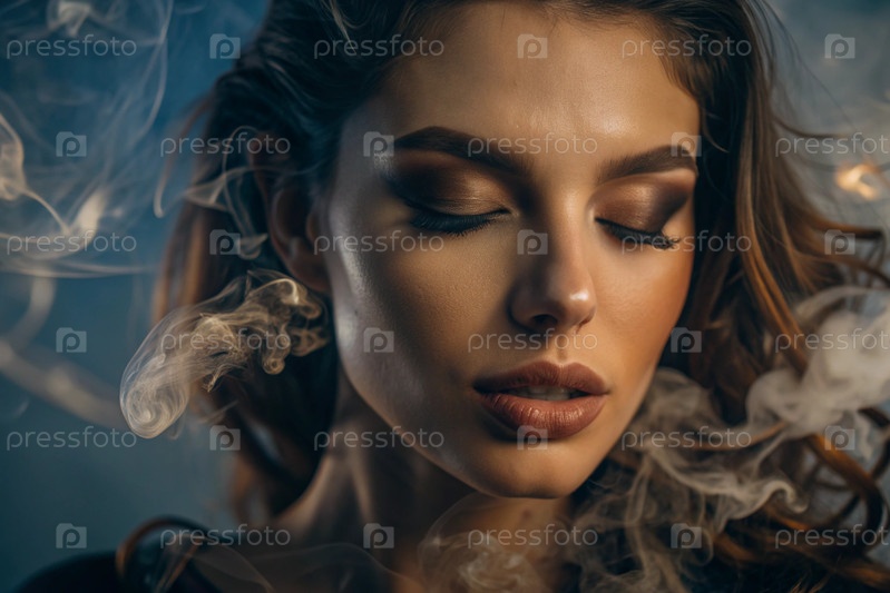 Молодая красивая женщина, завернутая в дым. 'Датура', закрывающая лицо прекрасной девушки