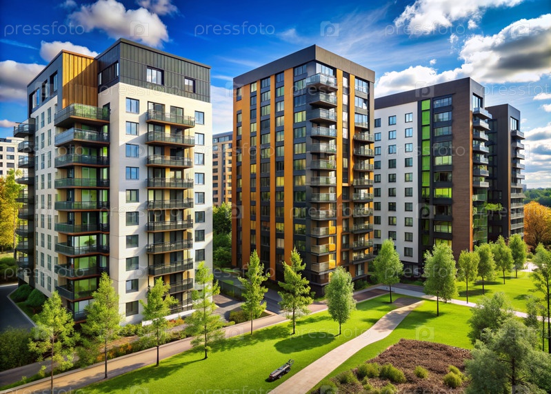 Современные многоэтажные жилые дома. Строительство новых жилых кварталов. Новые здания. Строительный бизнес. Ипотека для нового экологически чистого жилья