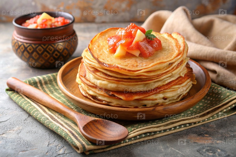 Вкусные блины с соленой красной рыбой.Концепция российского праздника Масленицы