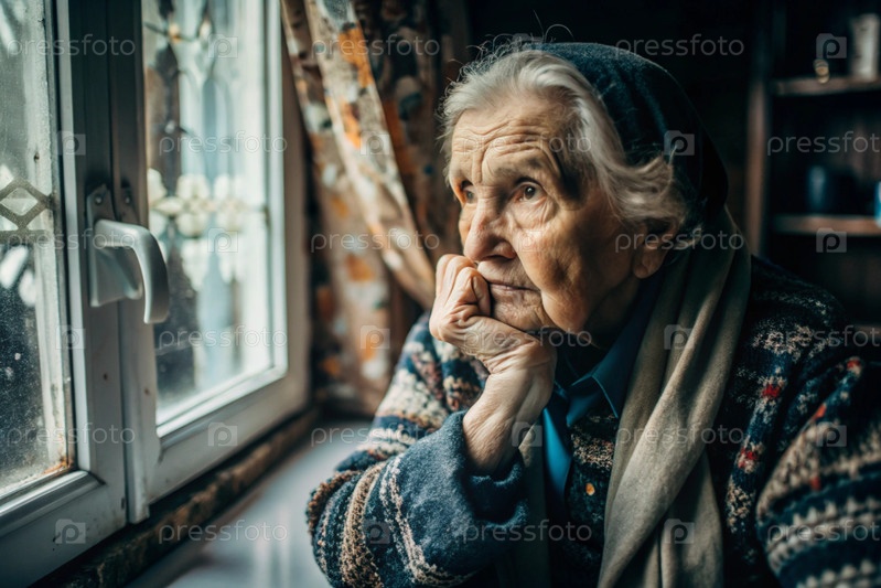 Минимализм.Портрет пожилой женщины, пенсионерки, концепция жизни пожилых людей, здоровье, одиночество и потеря памяти