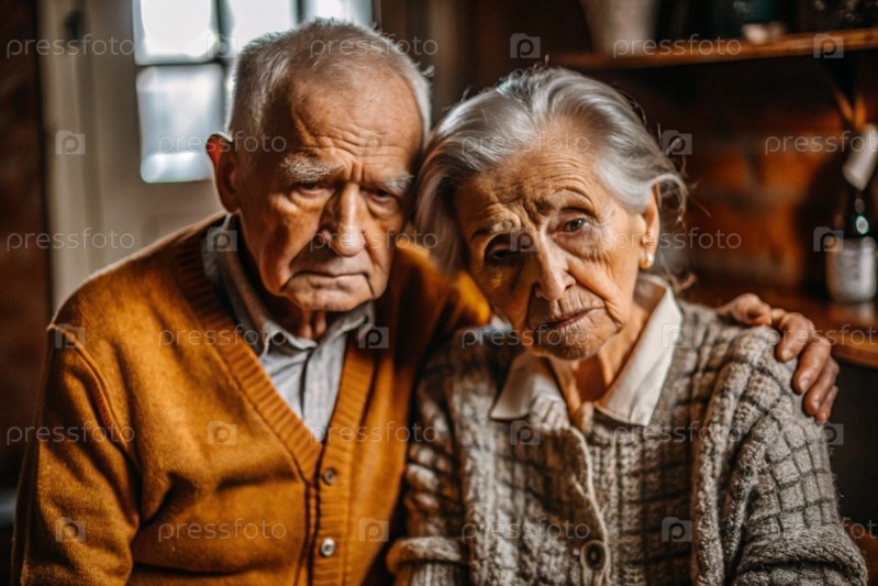 Старая грустная супружеская пара.Старость, пенсия.Проблемы пожилых людей.Дома престарелых