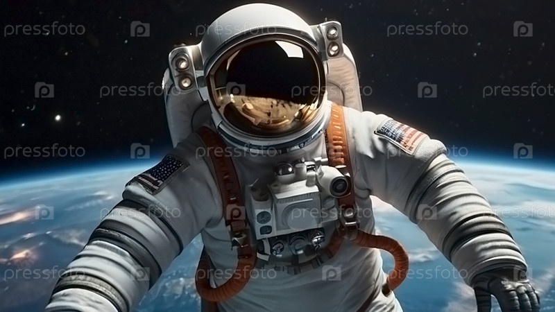 Счастливый космический день. астронавт в скафандре в космосе. захватывающий вид на планету Земля. изображение, созданное с использованием искусственного интеллекта