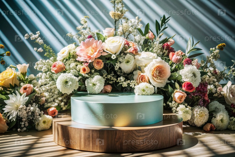 Минимальный фон для демонстрации продукта.Современный яркий подиум с цветами.Креативный дизайн для презентации продукции