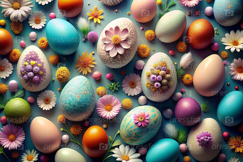Красивый фон с пасхальными яйцами и весенними цветами