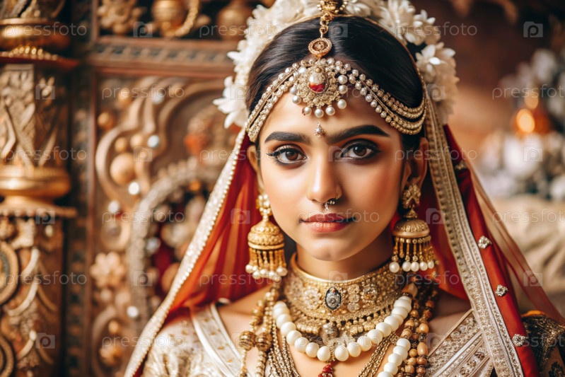 Красивая индийская девушка в традиционном национальном костюме, сари. со слонами. портрет символизирует традиции, культуру и красоту народа Индии
