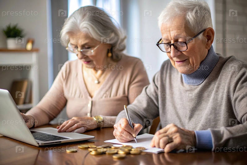 Пенсия. Экономия денег. Сбережения. Пожилая пара рассчитывает свои сбережения. Финансовая грамотность