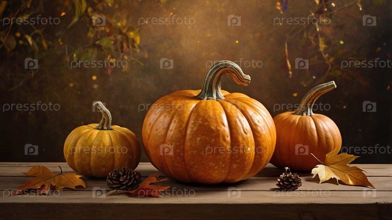 Осенний фон тыквы и осенние листья на фоне леса. Концепция Хэллоуина