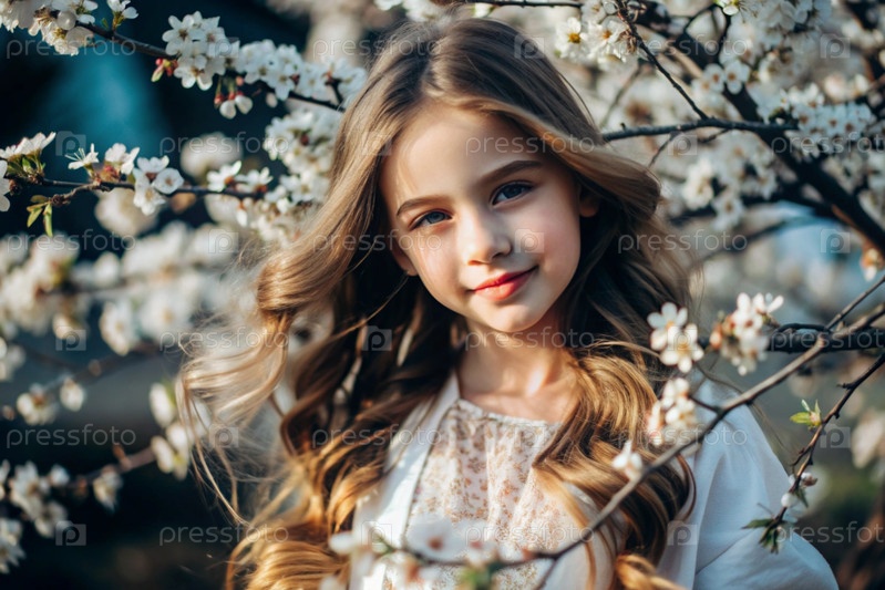 Весна.Портрет.Красавая молодая девушка в вишневом саду.Весенние цветения