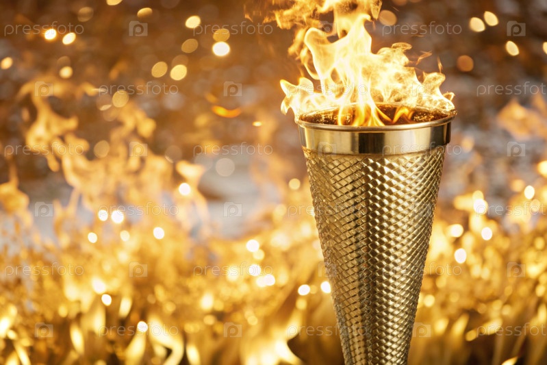 Пламя олимпийского факела горит среди красивого размытого боке