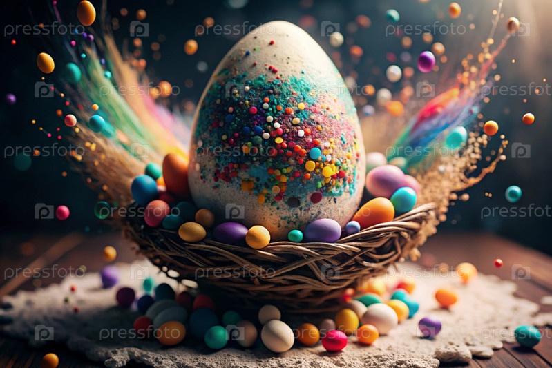 Пасхальный баннер. Концепция яркого пасхального праздника. Творческое абстрактное красочное пасхальное яйцо. Цветовой взрыв