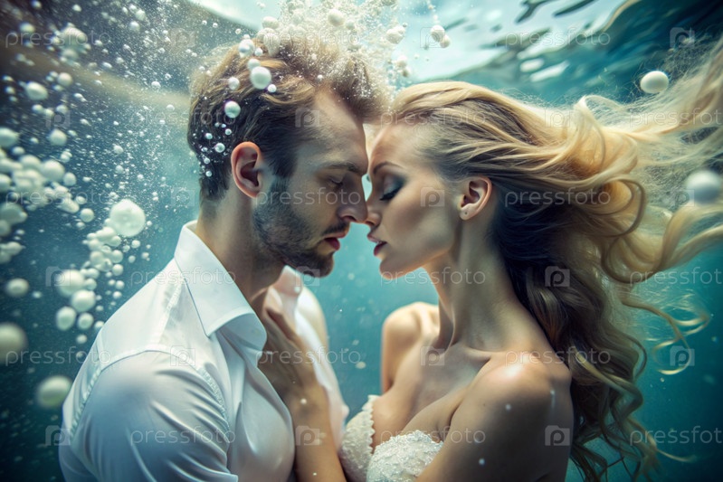 Красивые влюбленные. мужчина и женщина под водой на глубине. романтические отношения. необычное свидание