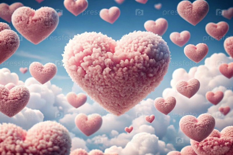 Знак на День святого Валентина. абстрактный фон. красивые нежные розовые сердца в облаках