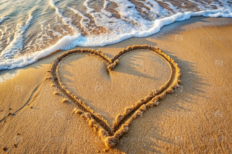 концепция отдыха и путешествий. красивый фон. верхний вид пляжа с белым песком, сердцем и пенообразным бирюзовым океаном