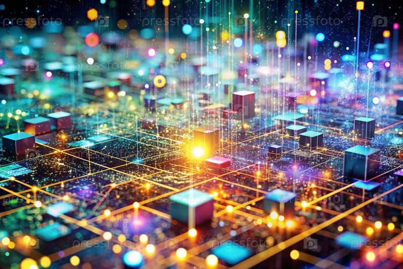 Высокотехнологичный материал. Закрытие линий и кубов цветными огнями, создание абстрактного и футуристического дизайна. Концепция развития и технологии будущего