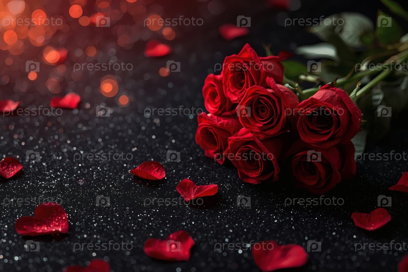 Концепция Дня Святого Валентина.Окончание букета красных роз на темном фоне в День святого Валентина