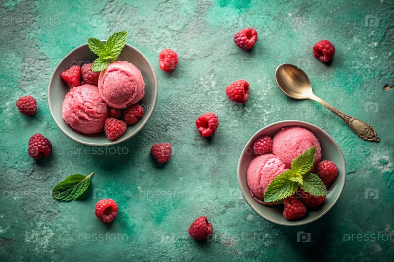 Сладкий десерт. Стильная современная концепция. Розовое малиновое мороженое на ярко-турецком фоне. Всемирный день мороженого