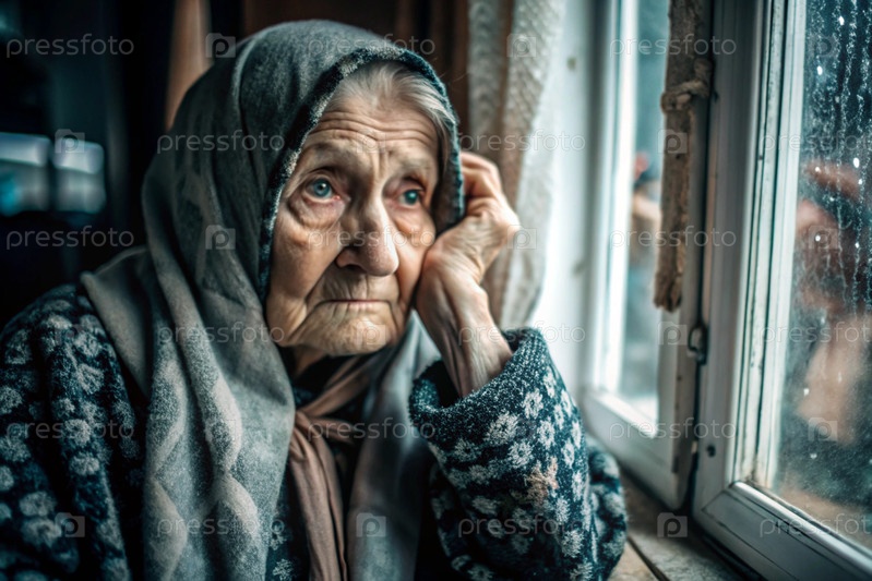 Минимализм.Портрет пожилой женщины, пенсионерки, концепция жизни пожилых людей, здоровье, одиночество и потеря памяти
